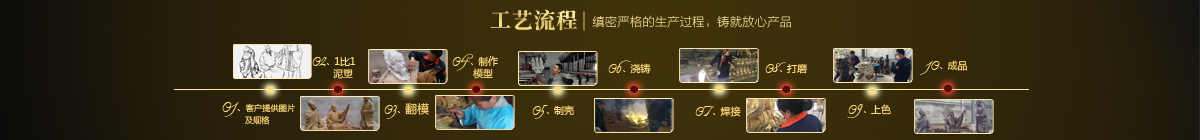 制作一件完美的鑄銅雕塑,最重要的步驟就是制作泥塑模型,然后再用工業(yè)硅膠拓印、翻模。所以泥塑的姿態(tài)、神情生動與否直接影響最終銅雕塑的品質(zhì)。所以我廠一直對泥塑模型的制作格外重視。我廠以雕塑為本,以藝術(shù)為根,挾中華文化之傳統(tǒng),偕歐陸藝術(shù)之風(fēng)韻,風(fēng)格獨(dú)特,盡顯淋漓盡致。我們本著大膽創(chuàng)新、勇于突破的精神,以追求卓越為導(dǎo)向,堅持寧缺勿濫為原則,并可依照您提供的要求,為您量身設(shè)計制作。我廠人才濟(jì)濟(jì),有智慧嚴(yán)謹(jǐn)?shù)墓芾戆嘧樱姸嗄贻p充滿激情、充滿創(chuàng)意的專業(yè)設(shè)計團(tuán)隊、有專業(yè)技術(shù)精湛的雕塑制作人才和專業(yè)的施工隊伍。他們不僅具深厚的文化藝術(shù)底蘊(yùn),更汲取當(dāng)代雕塑精華,博采眾家之長,作品既有嚴(yán)肅莊重寫實題材,也有輕松前衛(wèi)的抽象題材,表現(xiàn)手法上浪漫主義中不乏樸實,現(xiàn)實主義中蘊(yùn)涵著激情,設(shè)計理念貫穿古今、融匯中西,深刻詮釋著藝術(shù)的精髓,把古典主義和后現(xiàn)代主義完美的融合,將雕塑藝術(shù)演繹為力的凝聚、美的體現(xiàn),讓人們感受到的不僅是一種藝術(shù)的浪漫與優(yōu)雅、粗獷與悲壯、更是豐富的優(yōu)秀藝術(shù)寶藏和文化傳統(tǒng),讓您在藝術(shù)與文化中穿流,在時空中飄蕩,使靈魂在藝術(shù)的海洋洗禮。 MORE+